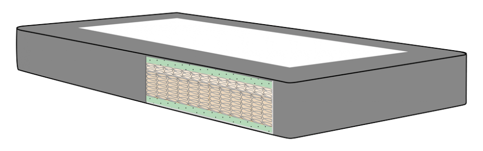 Als je ervoor kiest om je matras mee te stofferen (een echte boxspring matras) dan komt daarboven op nog een topper. De box bevat aan de onderkant een stevige MDF-meubelplaat met daarin ventilatiegaten voor een optimale luchtcirculatie. Verder zijn de hoeken van een hardcore foam zodat de strakke vorm gewaarborgd blijft.